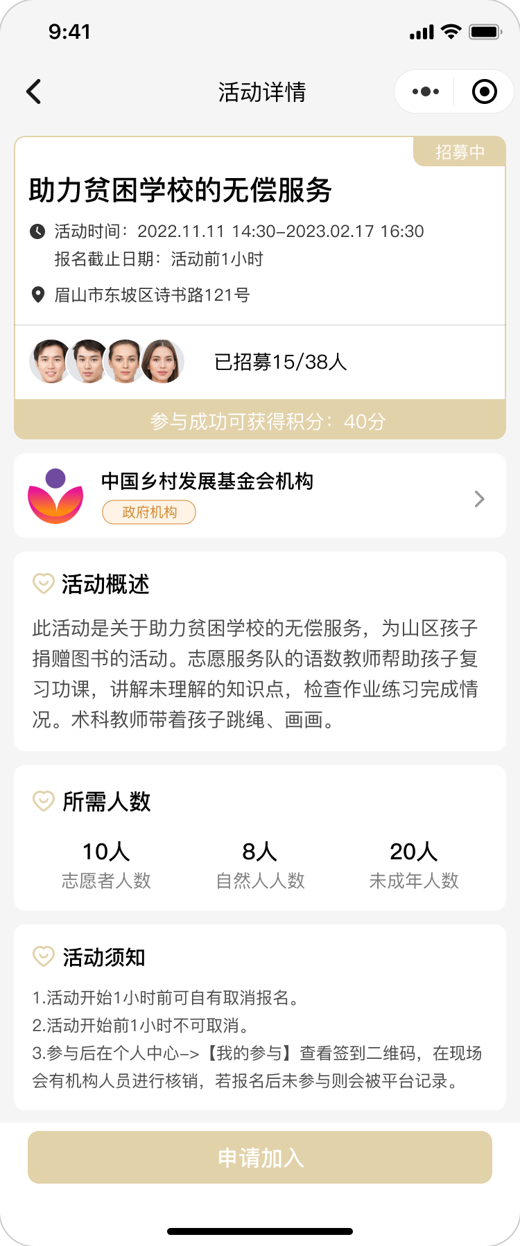 機構(gòu)人員申請入駐,發(fā)布志愿活動,線下參與活動。